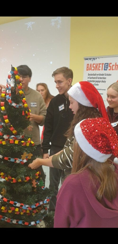 Am 25.11.2025 fand der diesjährige Austauschtag in Ústí nad Labem statt. Nach einer herzlichen Begrüßung fanden sich alle an verschiedenen Stationen zusammen, an denen wir Lebkuchen verzierten, Weihnachtsdekoration bastelten und Weihnachtsbaumanhänger bemalten. Anschließend dekorierten wir gemeinsam einen Weihnachtsbaum und naschten vom weihnachtlichen Buffet.