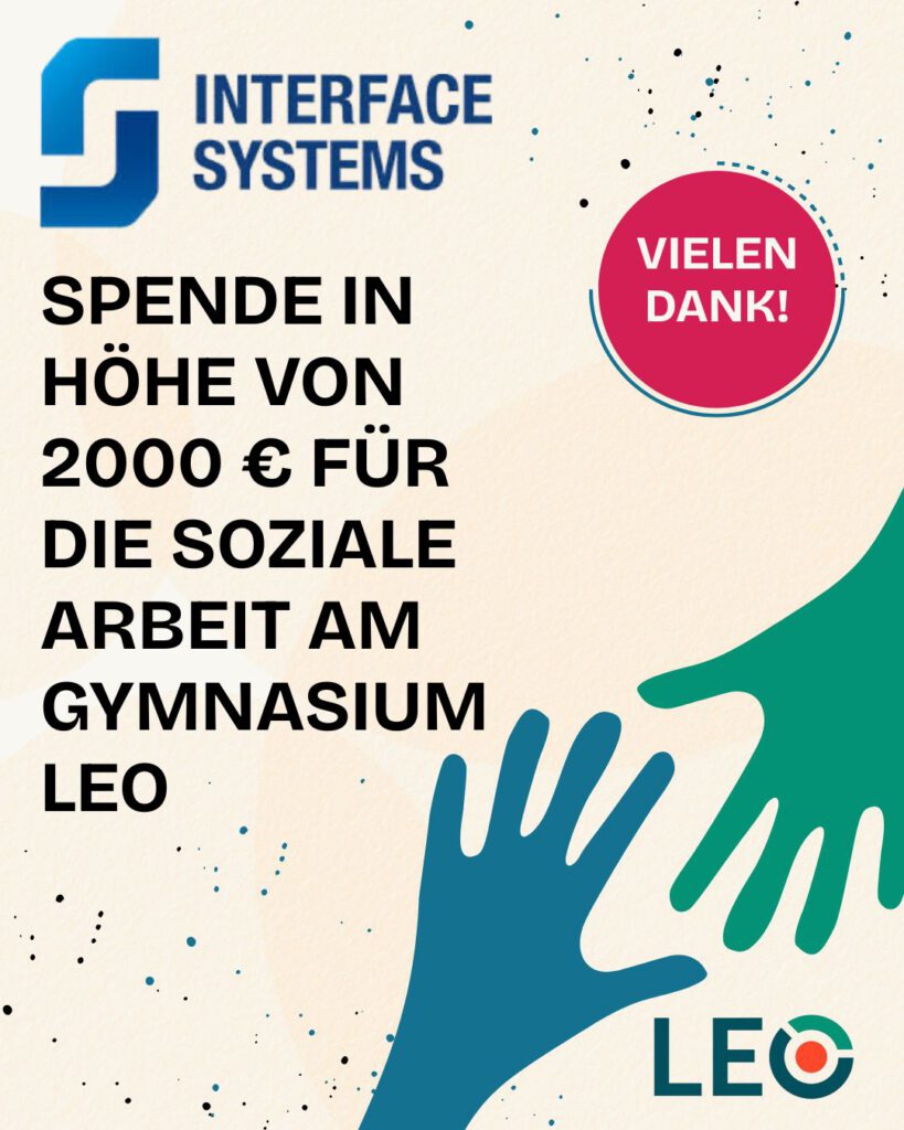 Um die Schulsozialarbeit an unserem Gymnasium weiterhin zuverlässig anbieten zu können, sind wir auf Spenden, wie von der Firma Interface Systems, angewiesen. Vielen Dank! Der Elternrat hat am 29.11.2025 per Mail an alle Eltern über die derzeitige Lage umfassend informiert und einen Spendenaufruf gestartet. Die Zeit drängt!