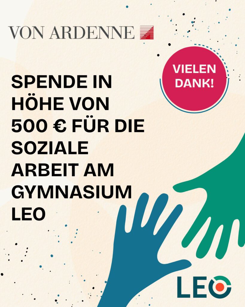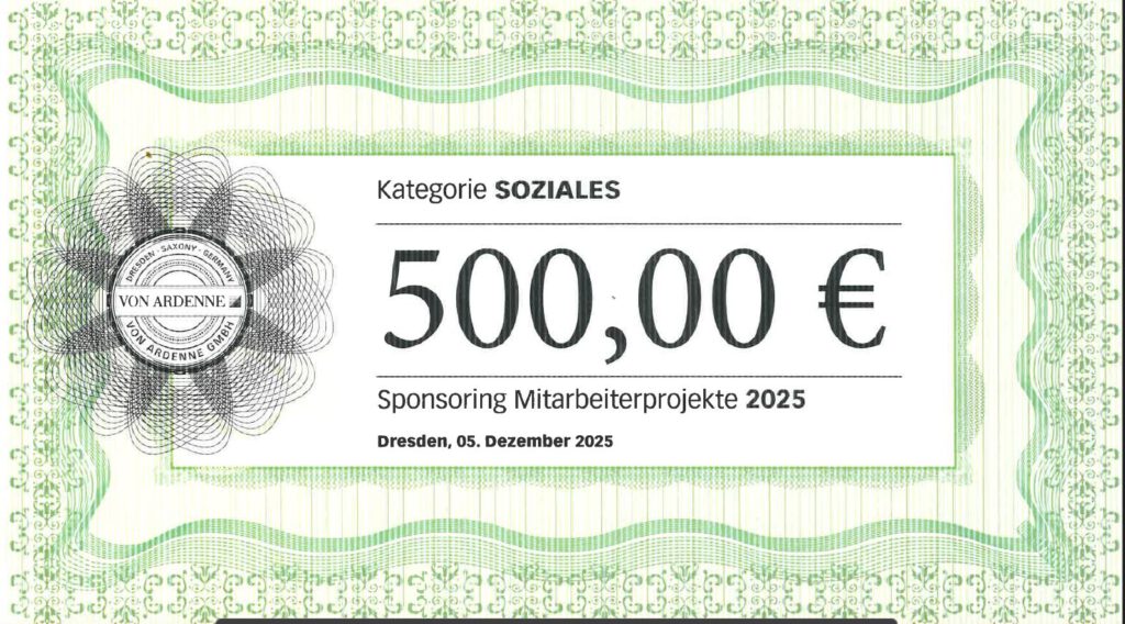 Vielen Dank an die VON ARDENNE GmbH für die Spende zum Erhalt der Sozialen Arbeit an unserem Gymnasium.